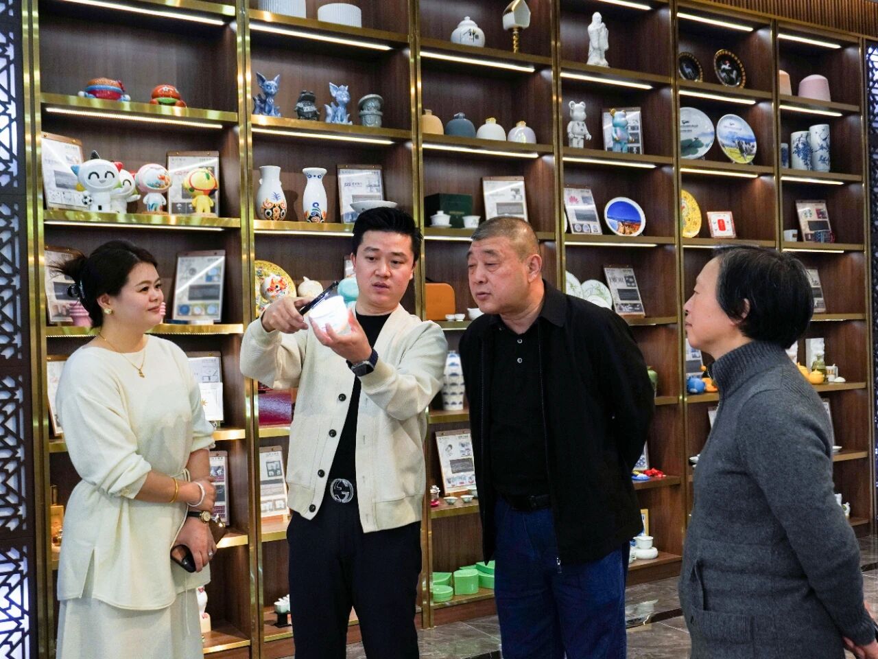 辰天陶瓷負(fù)責(zé)人就企業(yè)發(fā)展歷程、文化傳承創(chuàng)新、產(chǎn)品研發(fā)成果等方面作了詳細(xì)匯報(bào),并重點(diǎn)介紹了企業(yè)近年來在推動(dòng)陶瓷文化與現(xiàn)代潮流融合方面所做的探索與實(shí)踐,其中包括極具時(shí)代氣息的潮玩工藝陶瓷系列,以及多項(xiàng)技術(shù)含量高、市場(chǎng)前景廣闊的新式特種陶瓷產(chǎn)品。
