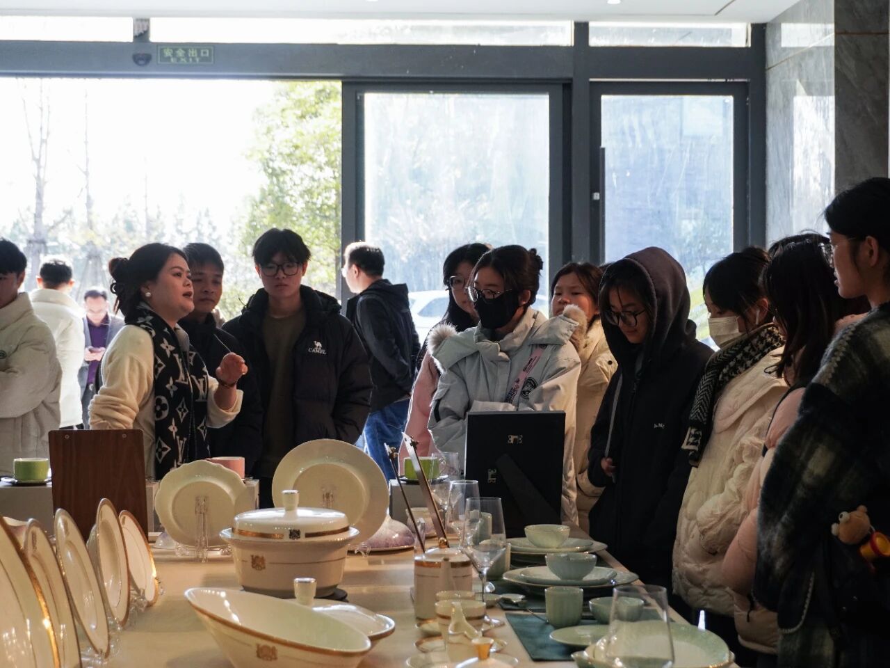 活動(dòng)期間,在辰天陶瓷負(fù)責(zé)人的引導(dǎo)下,美院學(xué)生們有序開(kāi)展了一場(chǎng)實(shí)地探訪活動(dòng)。他們依次參觀了企業(yè)的展覽區(qū)、生產(chǎn)區(qū)、辦公區(qū)等區(qū)域,以沉浸式的方式領(lǐng)略陶瓷藝術(shù)的獨(dú)特魅力。此次參觀不僅是一次別開(kāi)生面的陶瓷文化實(shí)踐探索,更是一場(chǎng)深度體驗(yàn)陶瓷文化精髓的精彩之旅。